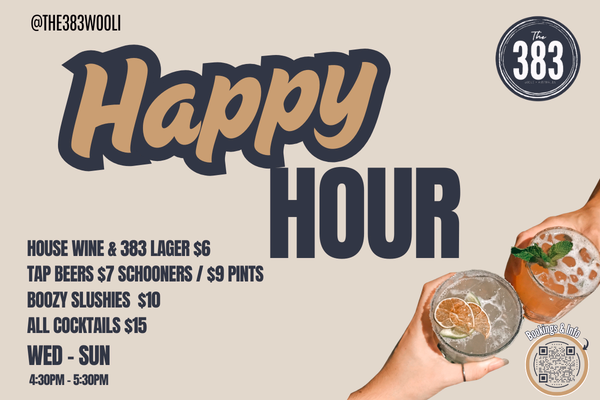 Lets raise a glass to the happiest 2 hours of the week! Every Wednesday to Sunday from 4:30pm - 5:30pm…